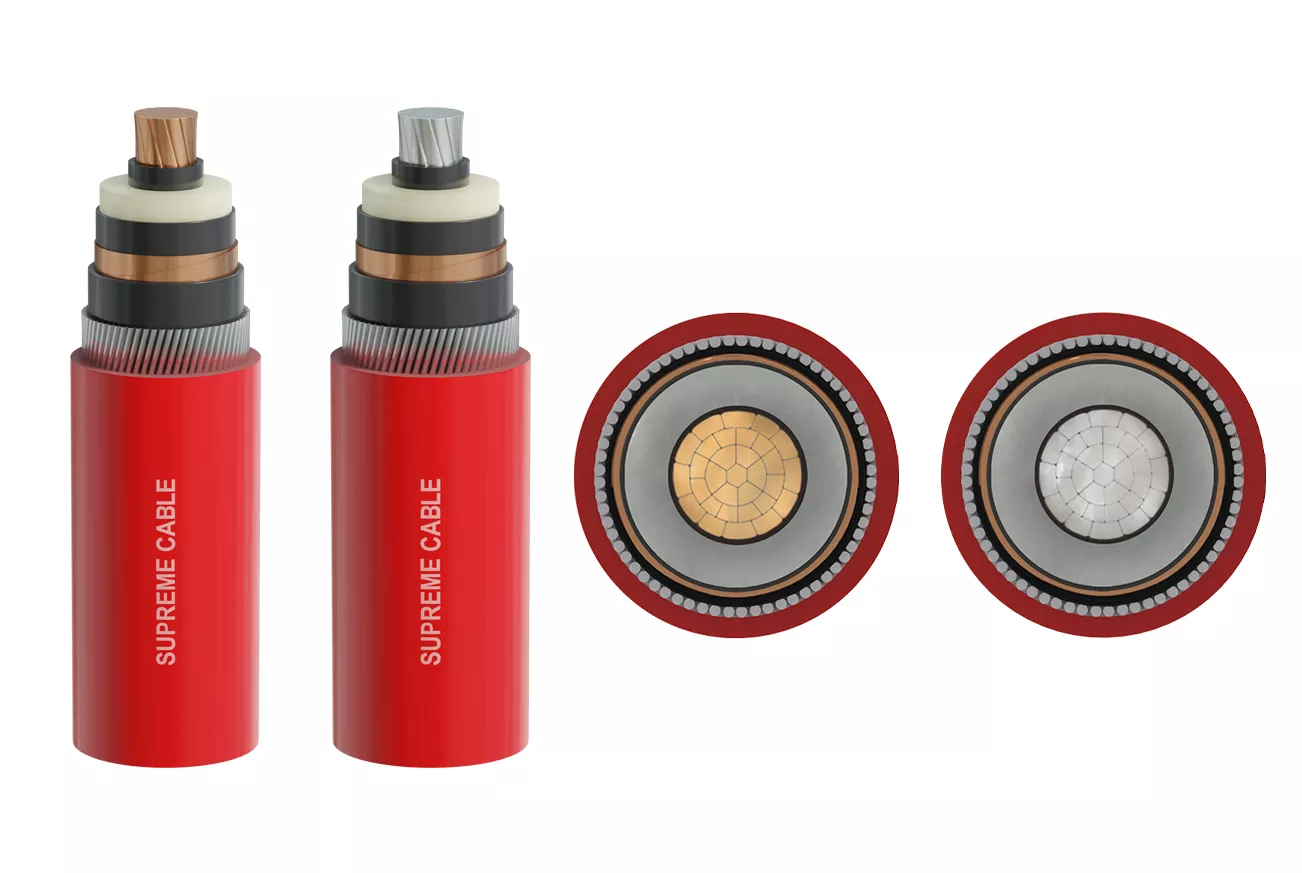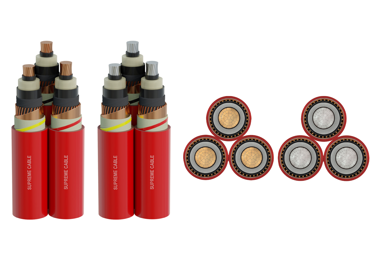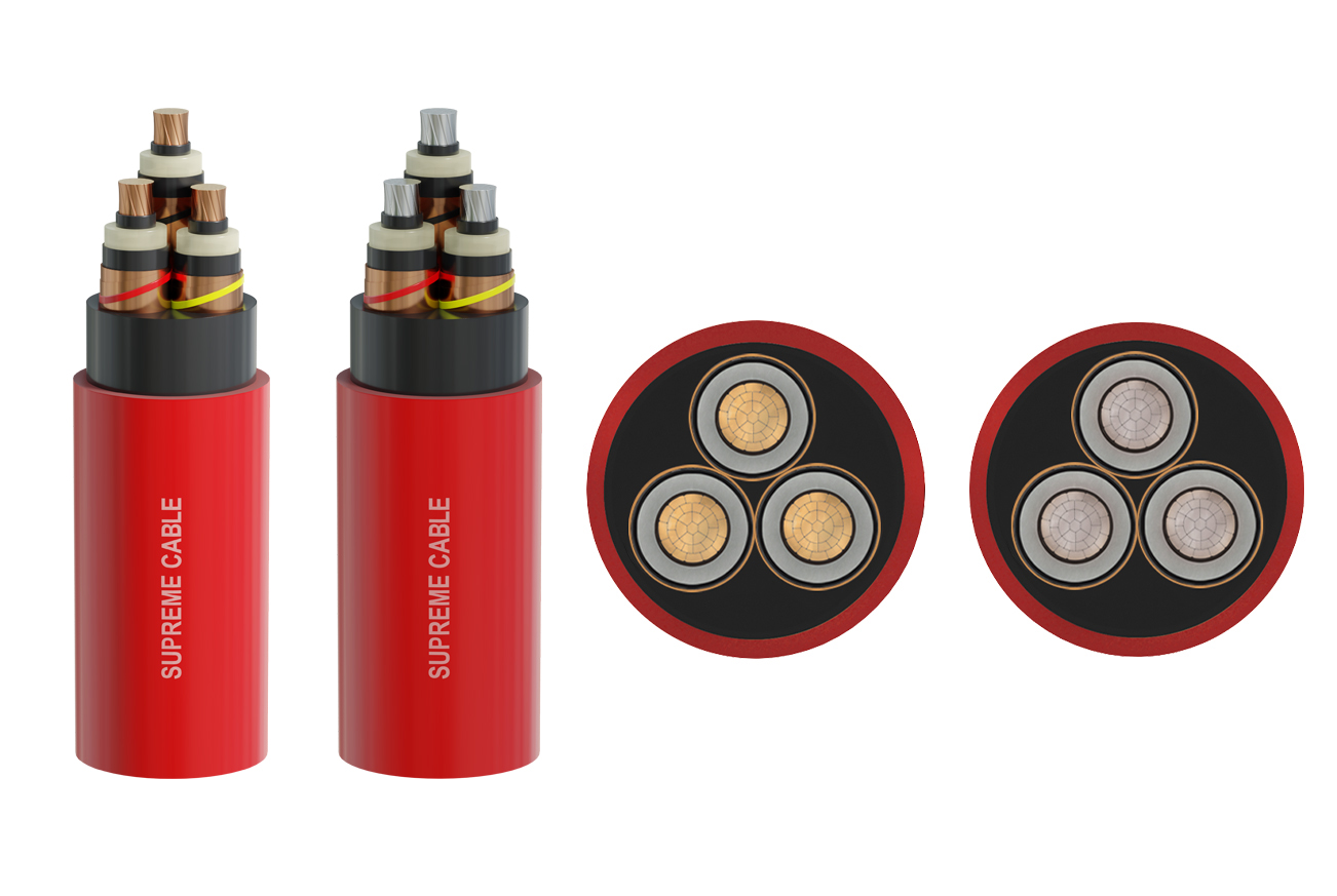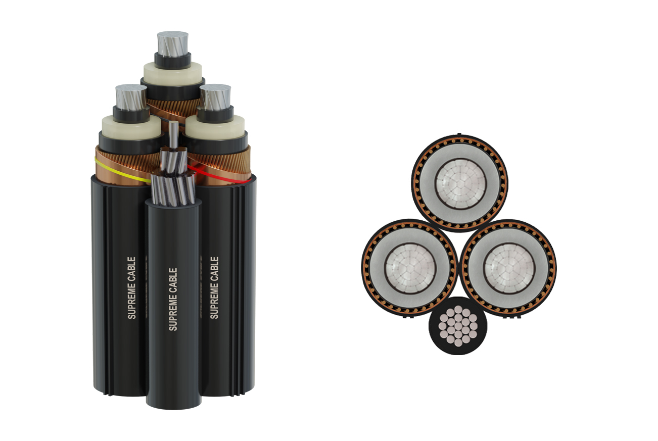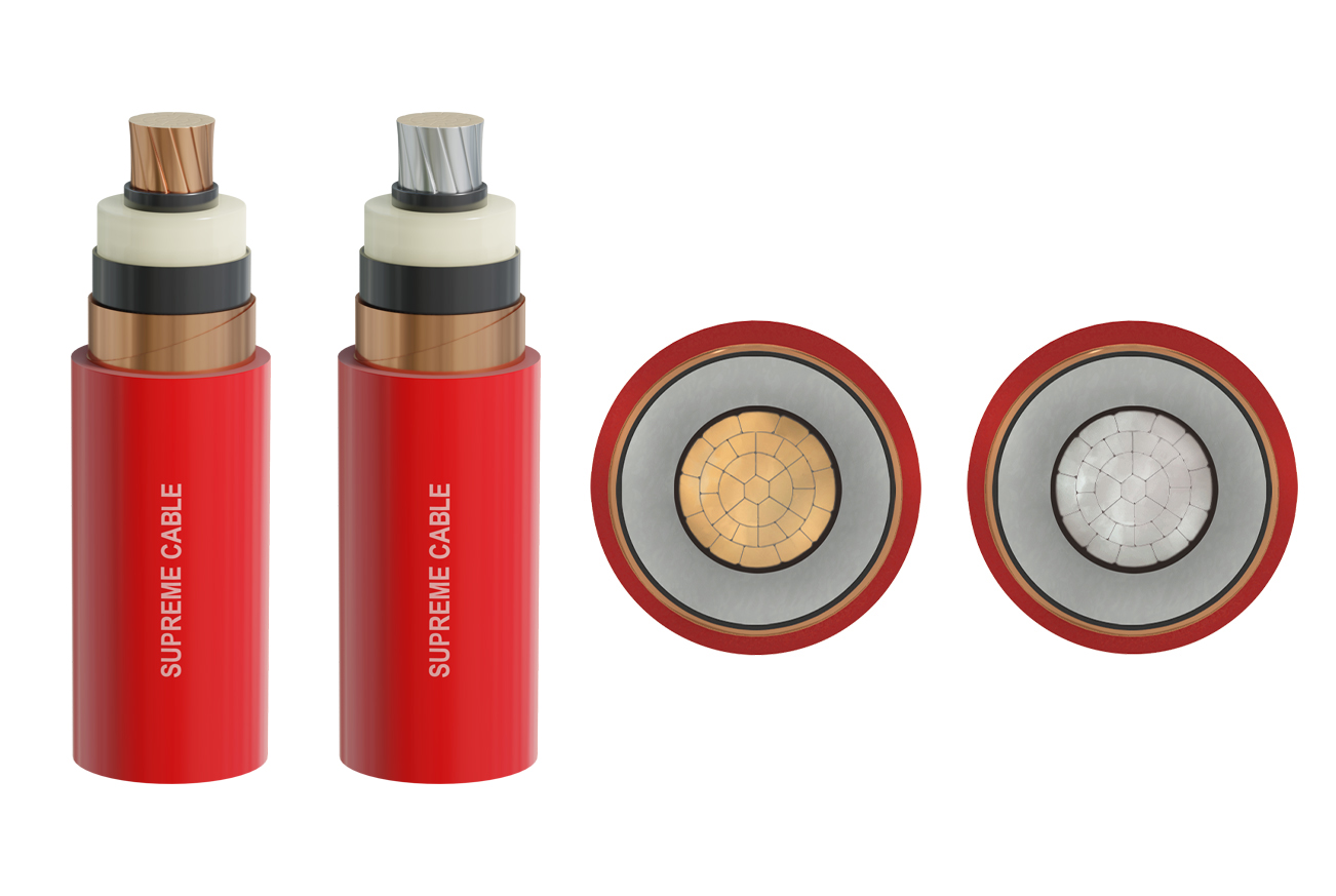 Konduktor tembaga / aluminium, berisolasi XLPE, dengan atau tanpa penyegelan air, kawat tembaga disaring, pita tembaga disaring, kabel berselubung PVC / PE