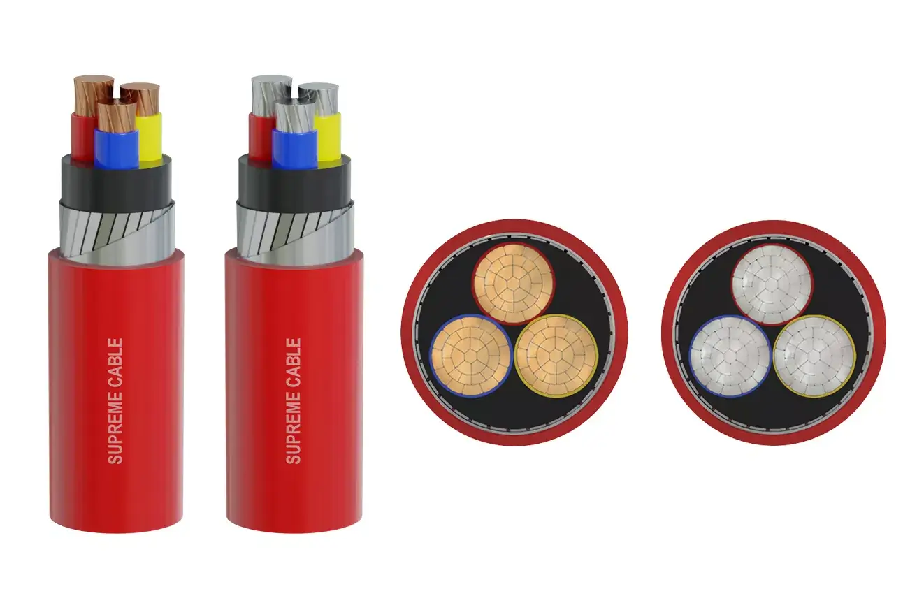 Konduktor tembaga / aluminium, berisolasi XLPE, kawat aluminium lapis baja, kawat tembaga / pita yang disaring, kabel berselubung PVC / PE