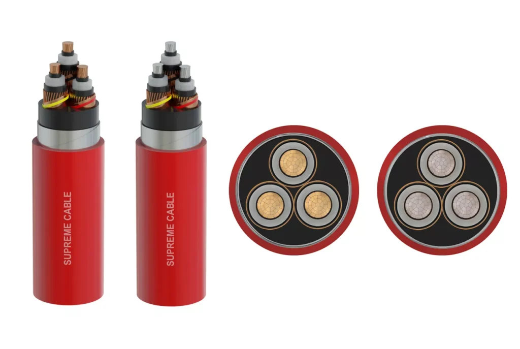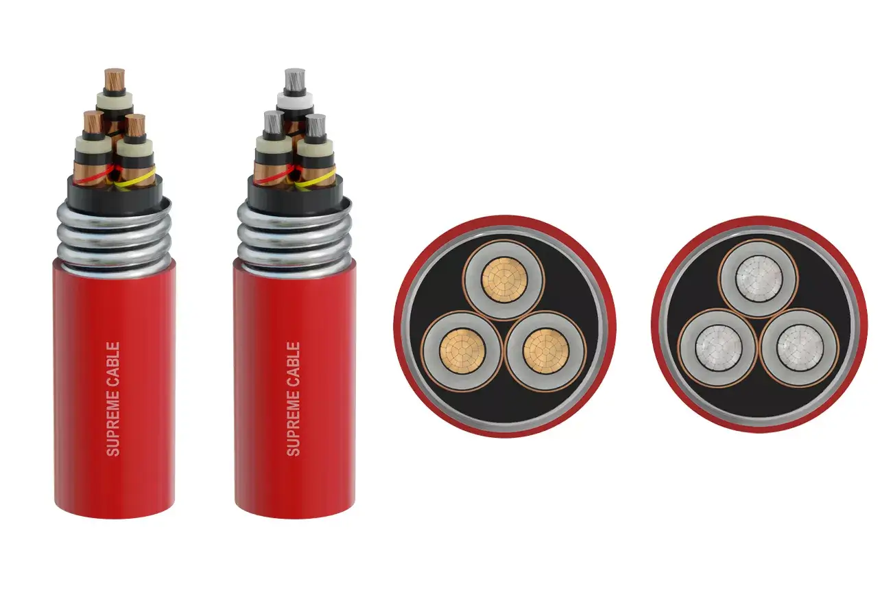 Konduktor tembaga / aluminium, berisolasi XLPE, pita tembaga disaring, pita bergelombang aluminium lapis baja, kabel berselubung PVC / PE